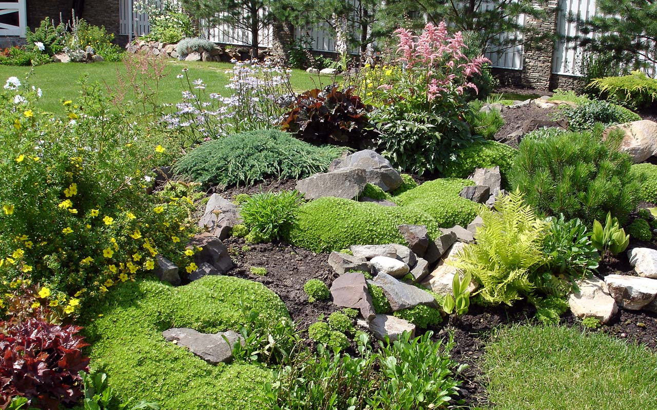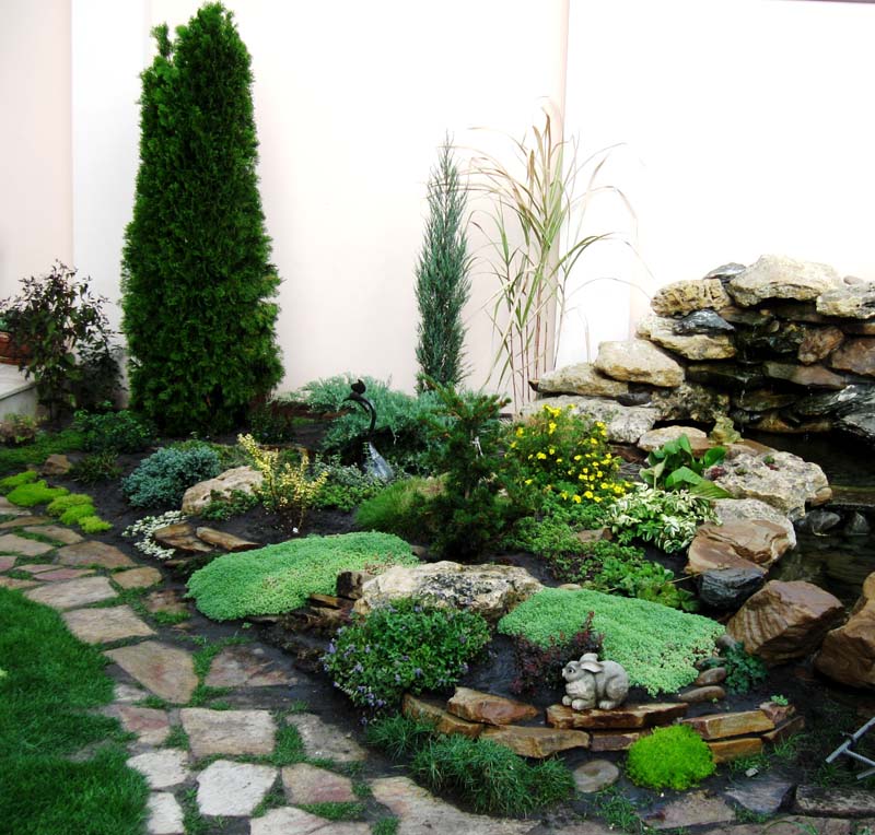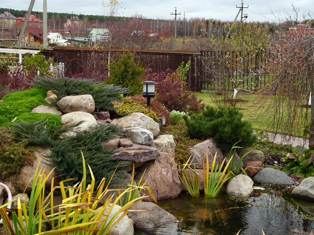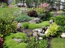 Rockery is a flat garden without pronounced differences of long-haul, when decorating which dwarf trees, stones, bushes, flowers and small pebbles are used (mostly gravel). There are three types of rockeries: