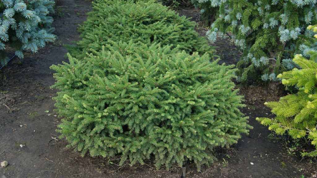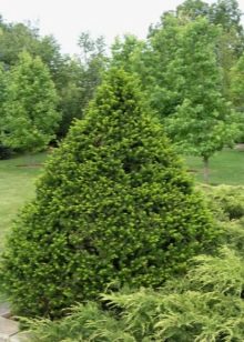 More compact options are sredneroslaya Canadian conic spruce, tompa frost-resistant spruce, weeping inverse or dwarf species, for example, miniature cushion-shaped nidiformis, white-sided with a characteristic white edging of branches or Lombers fir.