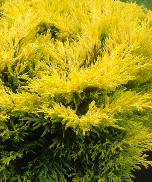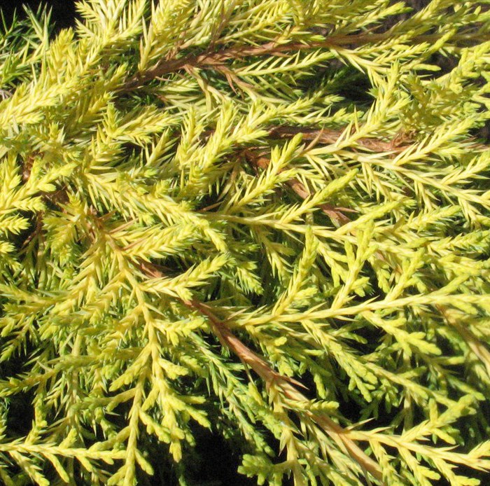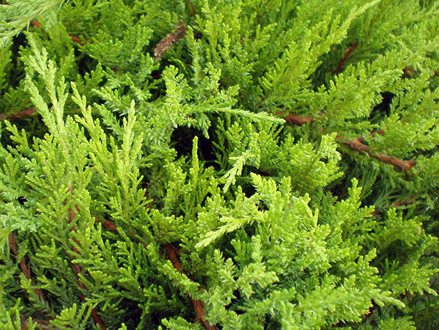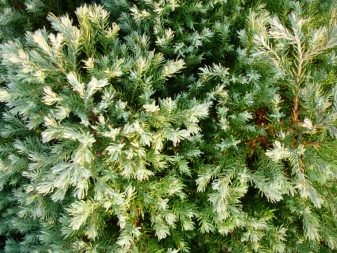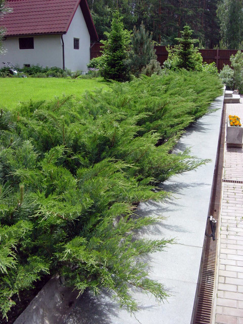 The most common and unpretentious Cossack juniper, suitable for use in the compositions, and to create fences. Typical juniper colors are green and bluish with a bluish bloom, although some types of Chinese juniper are distinguished by a rare golden hue.