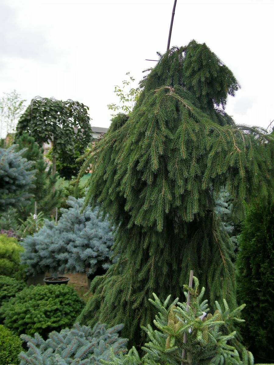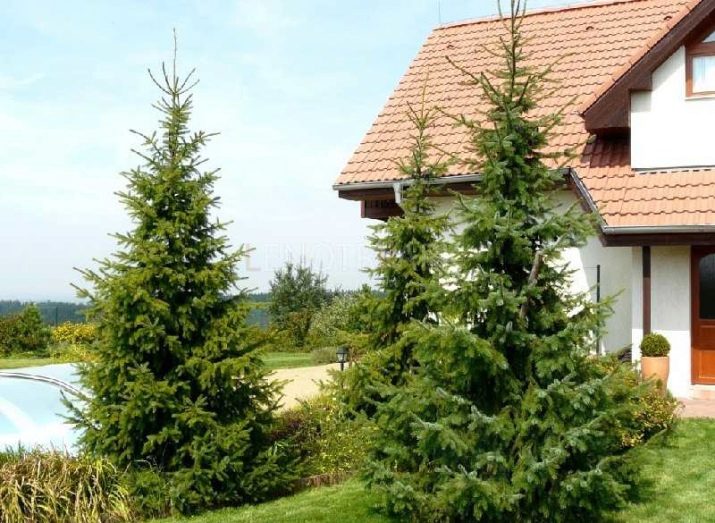 This tree is widely distributed in the middle lane and is also quite picky about the conditions of detention. In landscape design, they use both common spruce and its many varietal varieties. The most famous is the blue spruce, which, because of the unusual color of the needles, always looks beautiful and solemn. A good choice for a large-scale composition will be a tall Hoopsie spruce reaching a height of up to 15 m or a fluffy Serbian Christmas tree.
