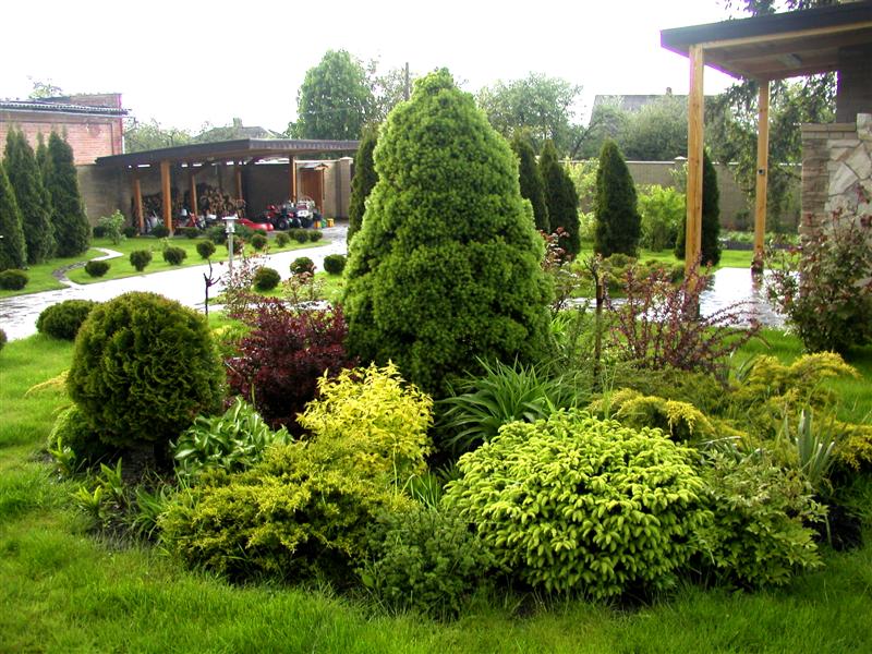 Coniferous plants have long occupied an honorable place in landscape design. They are pretty unpretentious, look great and smell, clean the air and stay green all year round. In addition, they are perfectly combined with trees of other species, flowers, stones or lawn, which allows you to create a huge number of different compositions. The most popular species are flower beds, rockeries, alpine slides and hedges, although some prefer to plant single trees or grow dwarf bonsai trees at all.