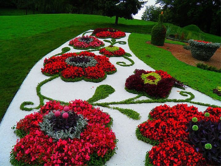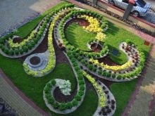 Unusual, but difficult in the performance of flower gardens - carpet.Such a flowerbed on top looks like a green carpet decorated with bright colors. It looks just amazing. But to create such living patterns is quite difficult, because you have to first make a sketch of a flower garden on paper, then draw patterns on the ground, sow the seeds. And still it’s not a fact that everything will work out from the first, because Plants may not behave at all as expected, thereby disturbing the harmony at the site.