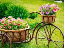 However, the main purpose of the flowerbeds - to please the eyes of those who live on the site, as well as decorate the area next to the house. To make the flower garden look beautiful, they try to place it in the original container with the ground. Such designs from scrap materials become not just a container for flowers, but a full-fledged decorative element in your garden.