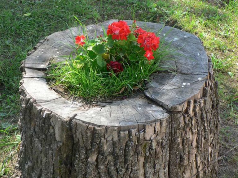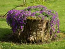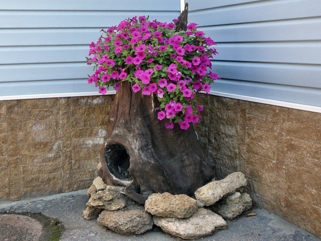 If you decide to make such a flower bed in your area, you will not spend a penny, only a couple of hours of your free time. Such a flower bed is made of pre-processed tree felling. It needs to be rid of branches, knots and other rough edges, gouge out the opening inside and fill it with earth. Looks like a tree, inside which flowers grow, incredibly beautiful. You can install such a flower bed under the house, next to the bench or at the entrance to the courtyard.
