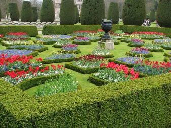 The flowerbeds stylized as decorative beds look beautiful. In these plants, as a rule, are planted in even rows. Sometimes they form some kind of geometric pattern. For example, a square, rectangle or spiral.Real herbs or vegetables can also adjoin to flowers in an ornamental garden. For example, carrots, thyme or basil.