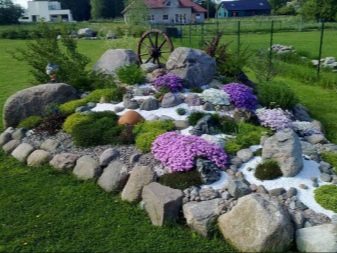 Rock gardens - it is flower beds stylized as Alpine mountains. To create them, the soil is first prepared. A hill is made of earth or stones. Land can be laid out with small stones, covered with moss or a thin layer of green grass. The plants that adorn rock gardens are used by those that grow in alpine meadows. If you do not have access to these colors, you can always replace them with something similar.