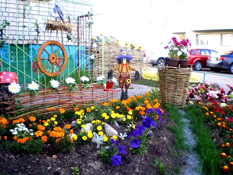 A beautiful flower bed in itself is a wonderful decoration of the site. But you can use some additional details of the decor.