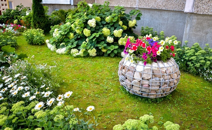 Since the main attention is always focused not on the flowerbed itself, but on its contents, one must be able to carefully choose plants that will not only look harmoniously in one container. They should also “get along” with each other, not oppressing, but not obscuring. In addition, it is worth remembering that there are plants that are demanding to care, and those that grow quietly without your attention. It is worth choosing flowers, being guided by the opportunities that the beautiful flower bed did not wither and did not dry out after a couple of weeks after registration.