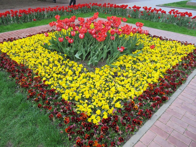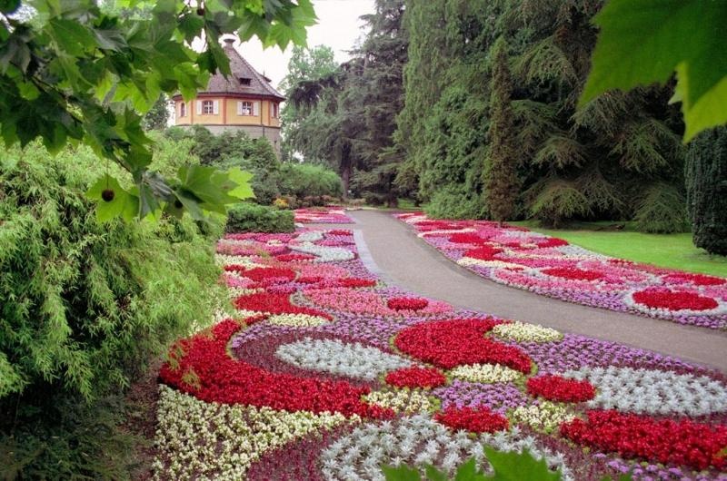 Flower garden with a beautiful name "Rabatka" found in many parks.This is a long rectangular flowerbed, which is often located next to a building wall or fence. The tallest plants are closer to the wall, and the low ones are next to the aisle. This not only looks beautiful, but also allows all sprouts to develop evenly, without hammering each other.