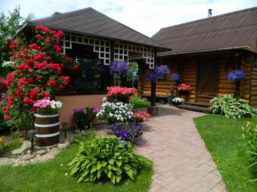 A flower bed next to the house is another interesting means of decorating the site. It is located usually near the main entrance or under the windows. By placing a flower bed next to the house in the country, you can constantly enjoy not only the beauty of the plants, but also their aromas.