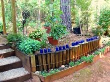 Another interesting option is the use of wood as a fence. At the very base lined with stones.