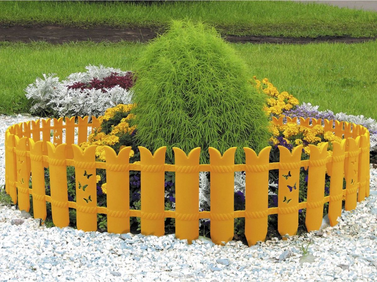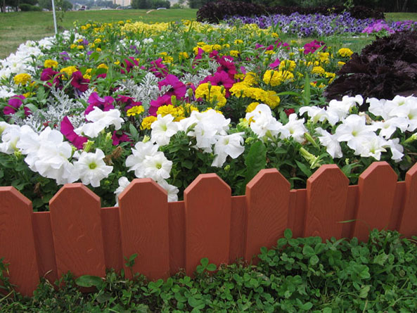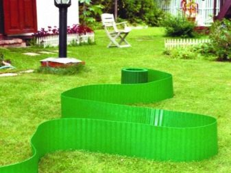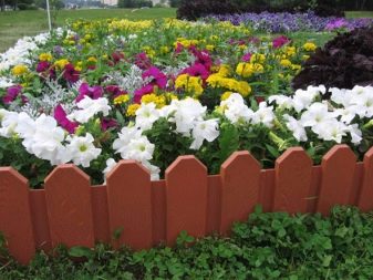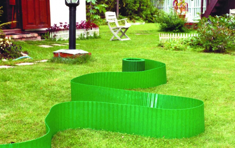 Fences from such material began to be used quite recently, but it is already very popular among gardeners. A plastic fence is sold not only in rolls, but also in plastic kits and consists of sheets 3 meters in length and 13 cm in height. It is very convenient to limit paths, beds and flowers. You can connect elements with wedges. Additional work does not require plastic. It is not necessary to paint the surface, as it is completely ready for use. In addition, plastic sheets are well suited for arranging children's sandboxes. They are quite reliable and safe.