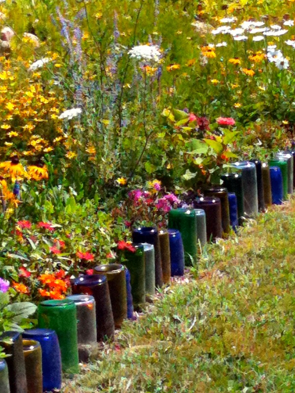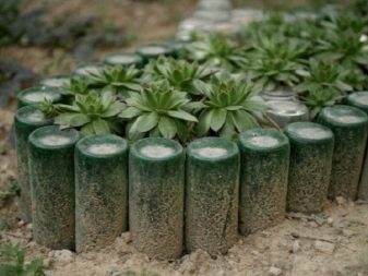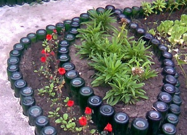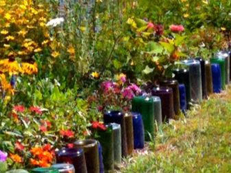 Often there are fences, lined with bottles. Ordinary glass bottles are stuck down the neck. You can alternate them by size or sort them by color. To enhance the strength inside the glass bottles are placed sand. Plastic bottles are also suitable for fencing. True, they are not so durable.