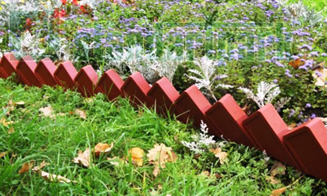 Create an unusual and interesting brick curb is easy. It is enough to collect a few debris and lay them along the flower beds or beds. You can put them in the form of dominoes, so they will look neat and beautiful.