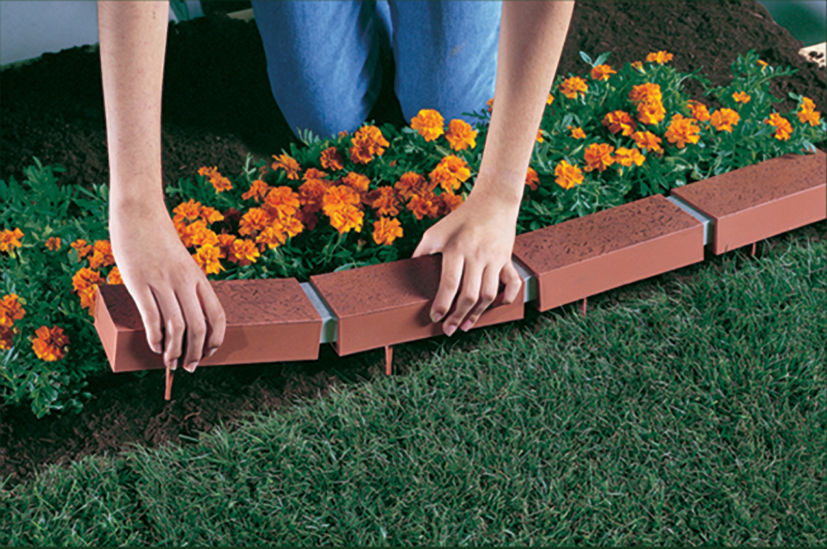 Work with plastic borders is very convenient. Plastic bends well, so it is easy to adjust. Such material is sold as a roll. Plastic borders are applied in the places lit with sunshine. It is not difficult to install such fences, simply sticking them into the ground.