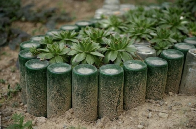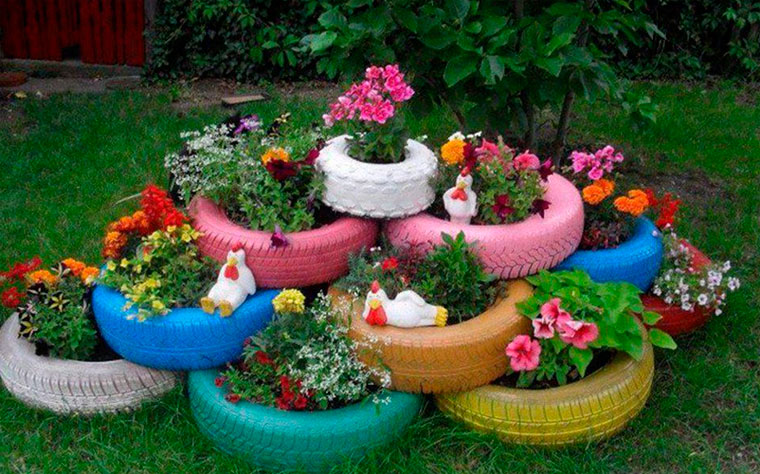 Anyone can come up with an interesting idea for making flowerbeds. And the tools at hand will always come to the rescue. These can be bottles, broken bricks, wooden discs, and even bowling balls. These materials will turn your garden into a real paradise. After all, everything that is done by hand, looks beautiful and original.