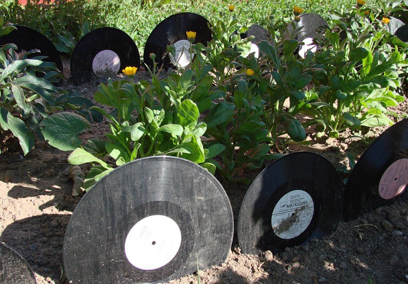 Probably in every home there are unnecessary discs (music or with movies). In the age of the Internet, they become useless. But do not rush to throw them away. It is better to take them to the country, let them become the original border for flowers.