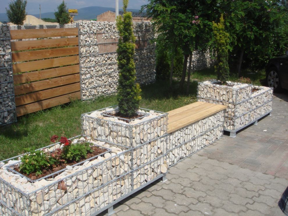 One of the design options flower beds - stone decoration. Border made of stone materials can be installed using dry masonry, and you can use solutions of clay, cement, limestone. Perhaps a combination with other materials. For example, with a tree. This option is very reliable and durable. Similar decor is popular. But they use it in different ways. Here, for example, stones are placed inside the metal mesh. It looks very original and stylish.