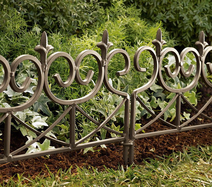 One of the best options for the protection of flower beds. Metal fits perfectly into the overall composition of the garden plot. Metal products have strict lines and precise proportions. Install metal fences is not so easy. You need to skillfully handle the tools, but in the end you get a great fencing for flowers. For this fit and metal pipes.