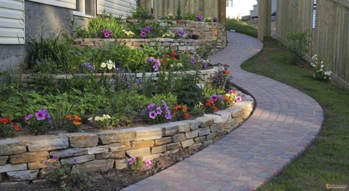 This option is economical arrangement, individual and practical. Even the most seemingly unnecessary things can be suitable for such a design: ceramic fragments, slate, logs, stones. However, choosing a material is half the battle.It is also necessary to arrange it beautifully, having covered it with colored paint or to correct the material: to file it, to undercut it. But it is important not to overdo it, otherwise you can spoil the whole picture.