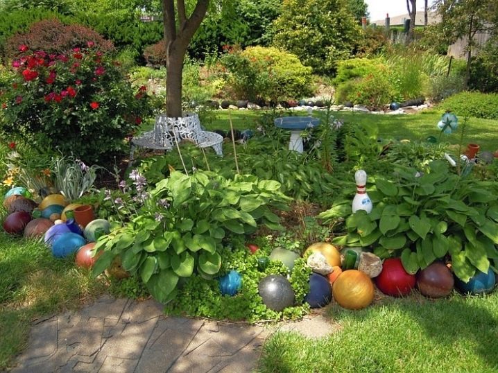 Perhaps one of the strangest and most creative ways to protect flower beds are bowling balls. This option is rarely found, which gives it a certain originality. They will hold fast in place. To enhance, you can fall asleep sand.