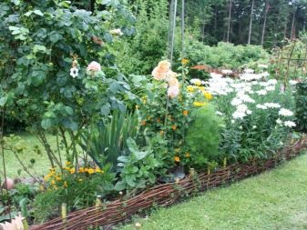 Also wattle will look good in combination with field and garden flowers. It is not by chance that he is chosen for the garden as an alternative to curbing around the flower bed, creating amazingly beautiful decorative fences.