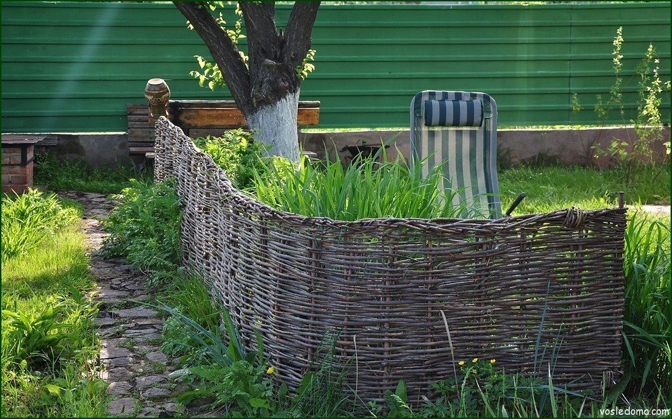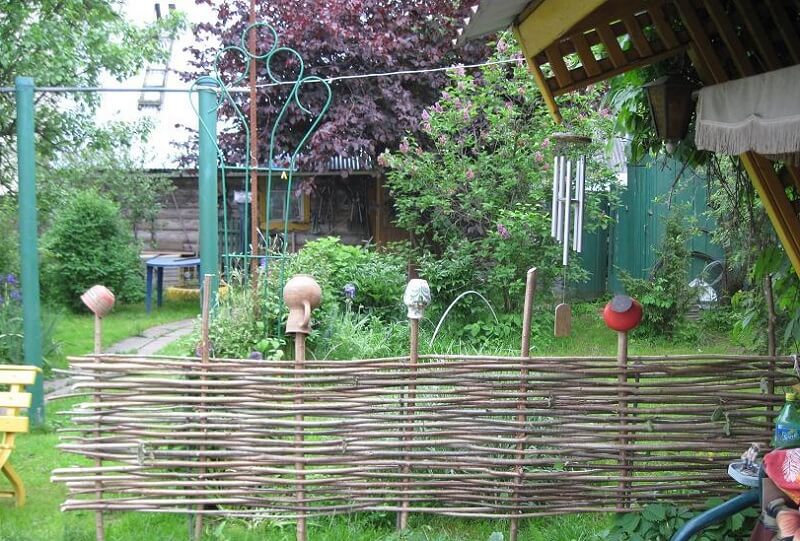 Such a wicker fence is quite simple to make independently from scrap materials. This activity can also bring a lot of pleasure to a person with creative thinking and skillful hands.