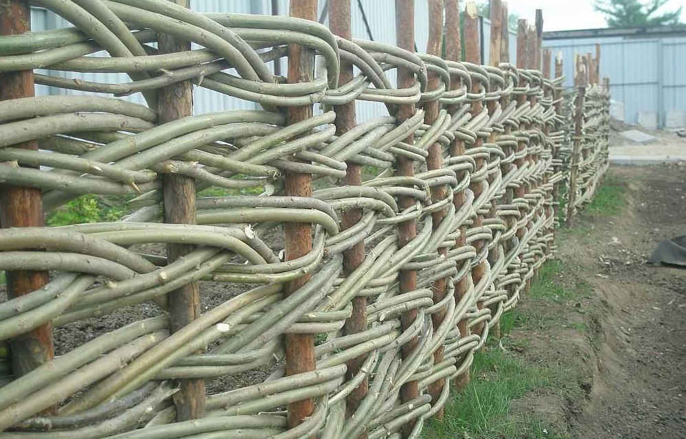 In order to create the weave itself, you need to decide on the installation location of this fence and the material from which it will be woven. You can do it simply by harvesting a vine from what grows in the area — hazel, willow, acacia, aspen, and other trees and shrubs.