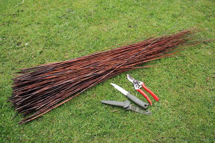 Creating a fence you need to attend to in advance. In order not to harm trees and shrubs, the material is advised to harvest in January. Choose flexible branches with a length of at least half a meter. The thickness of the blanks should be one to two centimeters.To have a lot of room for creativity, it is good to stock up with branches of different colors.