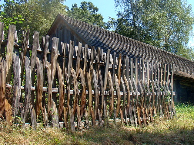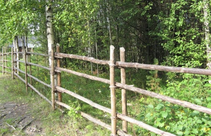 In addition, the fence can be an excellent support for beautiful bindweed. And if, next to such a fence, you build a roughly hemmed up shop of chocks and boards, this neighborhood will be very picturesque. On the stakes of the fence, you can hang old cracks with cracks, or even old shoes of the original look, giving the building a non-standard look.