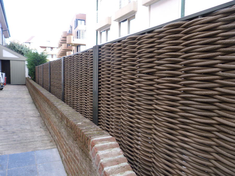 If weave the rows of horizontal braids with a pigtail, we get a creative design solution. Such a fence will be practically transparent, but its texture will divert attention from everything that is behind it.