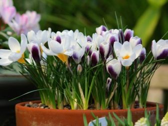 - Small crocus islands are attractive for their early blooming. From afar, such a small flower garden is pleasing to the eye with its delicate bright coloring, it is seen as if a small island. Usually they are planted on the lawn, under bushes with other species of low-growing primroses.
