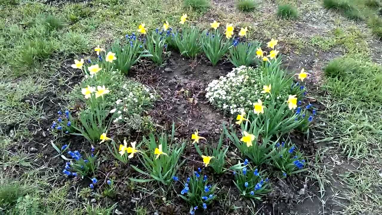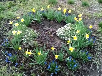 - The first flowering begins in spring, for this purpose, low-growing perennials - primroses, snowdrops. They need to be placed in the foreground. Tulips and daffodils can be planted behind them, as they are taller and bloom at the first warm sunlight.
