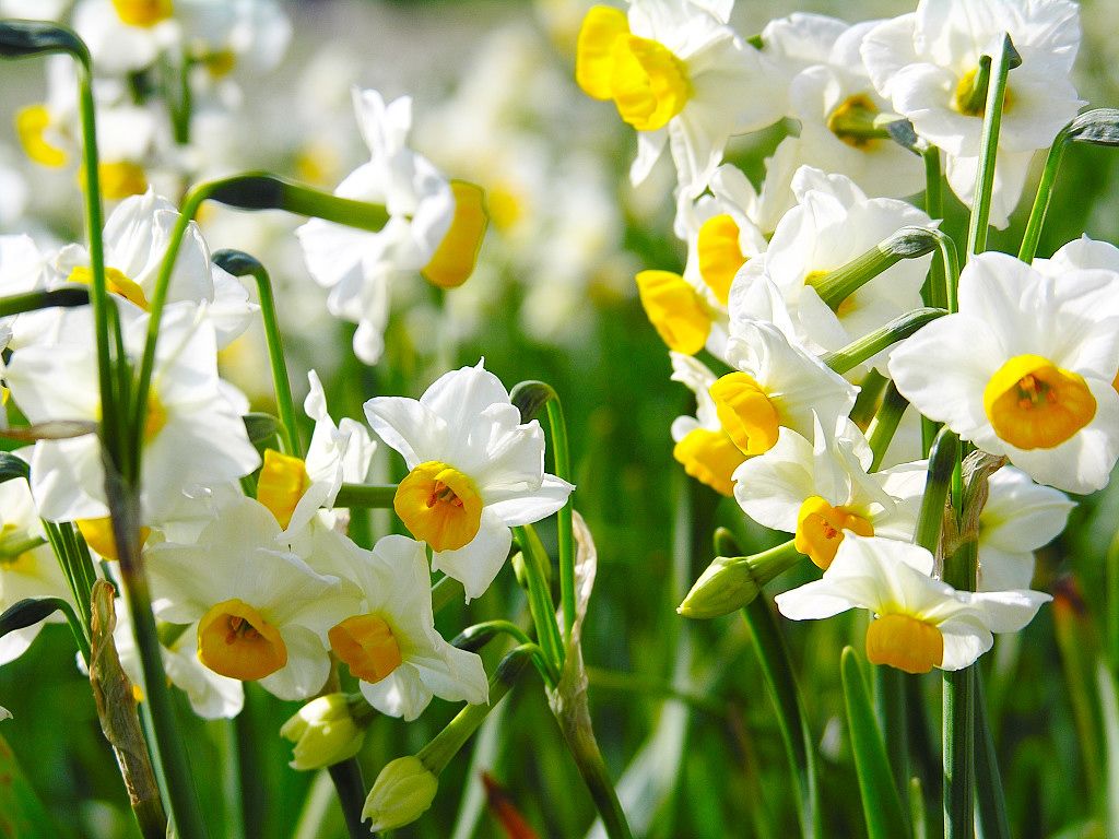 - Narcissus flower garden looks very impressive. A huge advantage of this plant is unpretentious. Usually they are planted with tulips, since daffodils have modest thin leaves.