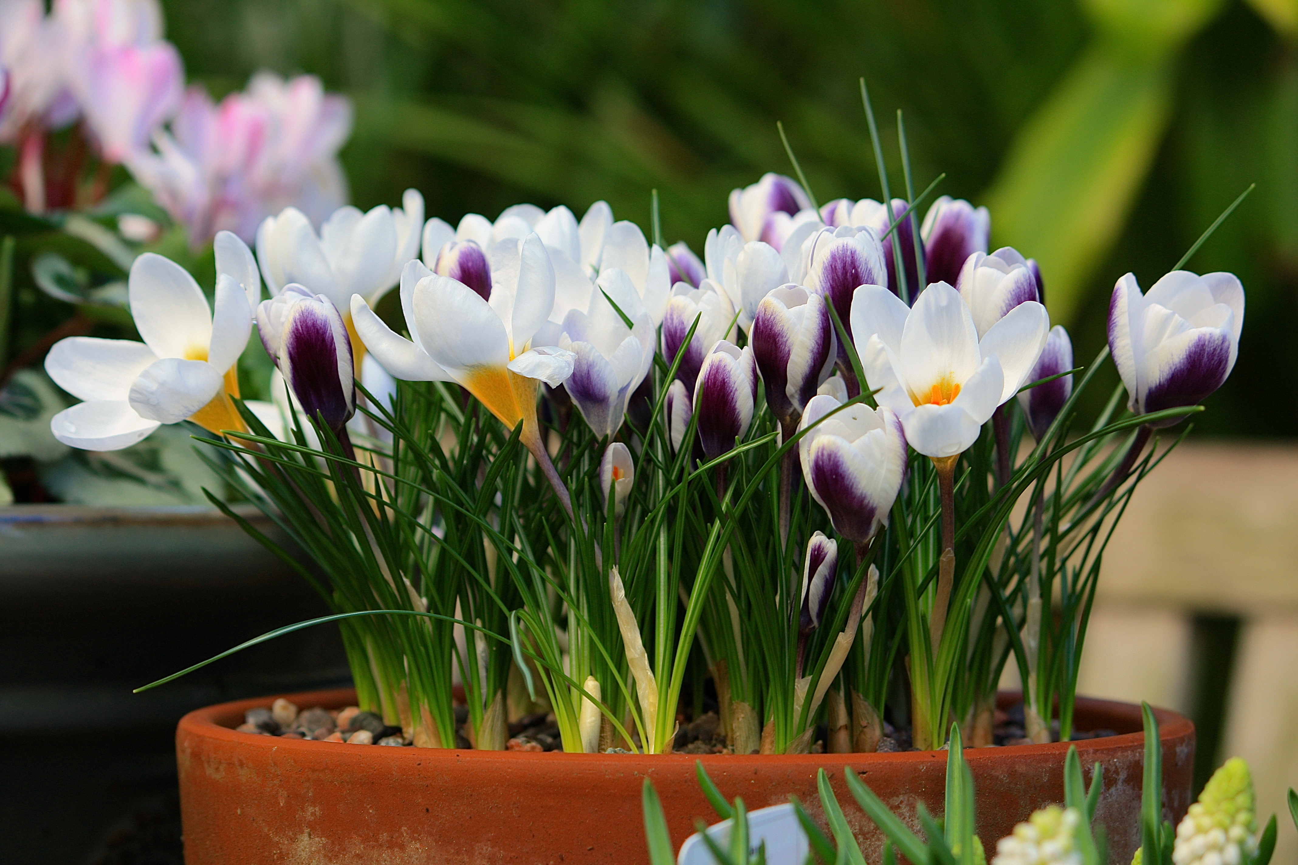 - Crocus, and in another way saffron. Planted in the fall in deep containers.