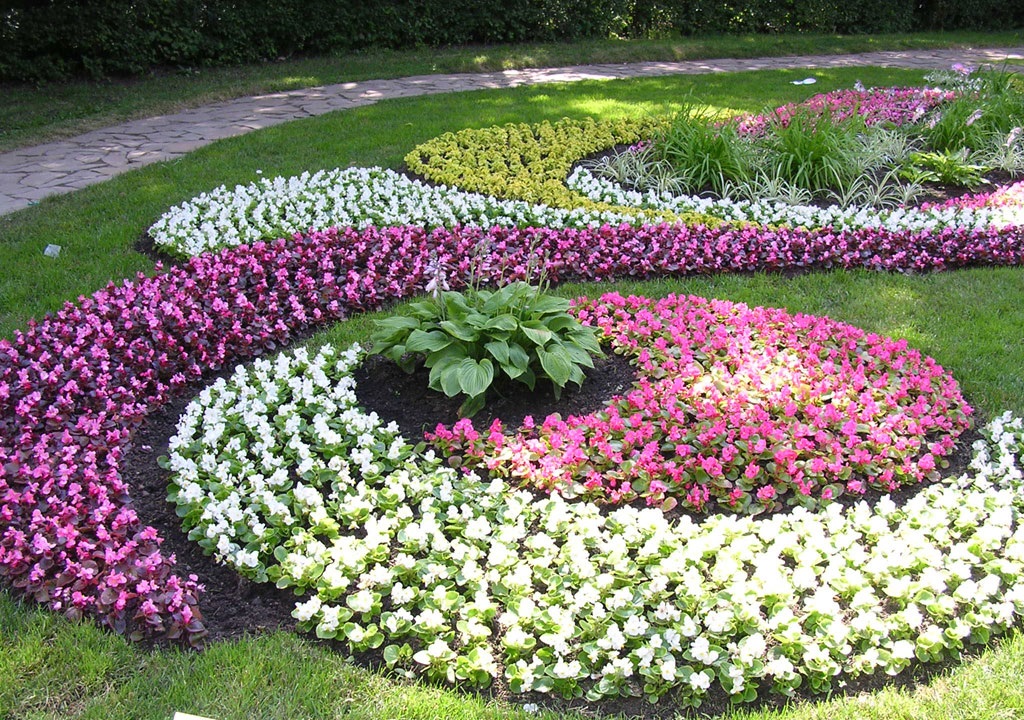 - Flowerbed is the most common type of design in landscape design. It is typical for her to observe the correct shape of the flower bed and small size.