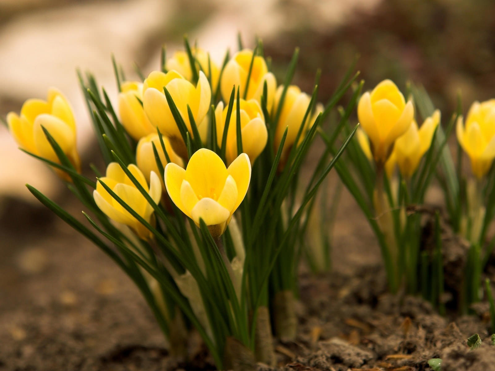 Also the primrose is rich in color variety. Small colorful islands will cheer up. Delicate crocuses can also be planted randomly or by color.