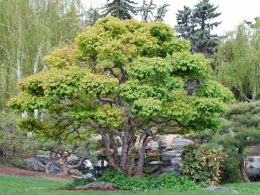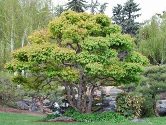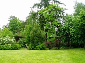With the help of krupnomerov, resistant to the shadow, make out the most remote from the observer a number of plantations, they are also used for accents in the middle of the composition. Such bushes well set off the dignity of ground cover and grassy lawns. It is recommended to choose hazel, western thuja, viburnum or Cossack juniper; but keep in mind that these plants, like tree hydrangeas, and dioecious Volzhankas, will perform well only on large areas.