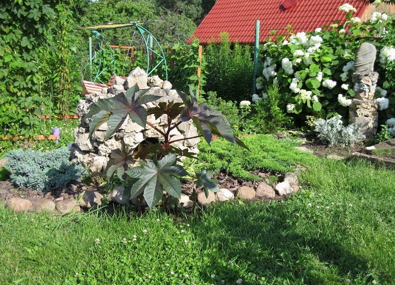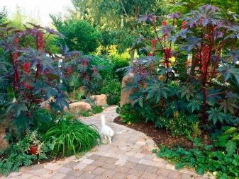 Among the medical annuals it is worth emphasizing such a worthy candidate for a place in your garden, like castor oil. Its growth reaches 200 and even 300 cm, excellent opportunities are opened when planting these bushes as hedges and flower beds along fences.