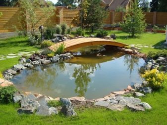 Not less attractive step may be a combination of moderate landscaping of the perimeter of the pond with a green isthmus, stretching through the entire reservoir.