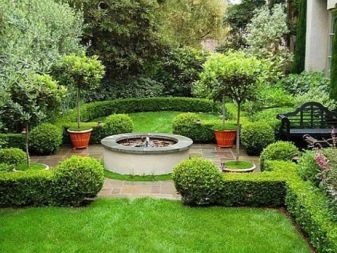 If there is a desire to apply the same tree to create compositions in single inclusions, feel free to choose cypress trees and thujas.