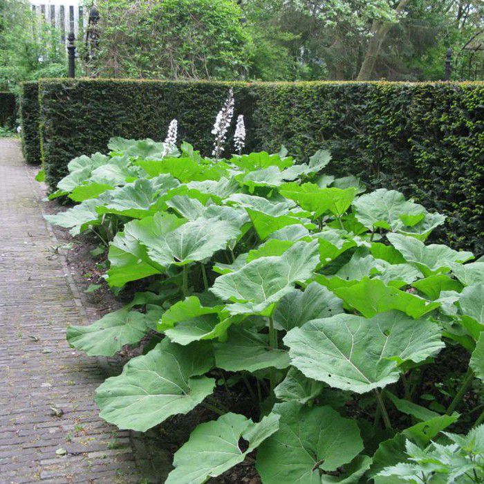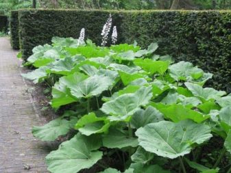 Here is a wide butterbur, rapidly capturing all new and new territory. The accelerated growth of its advantage can be a disadvantage if you do not protect other plants, do not prevent their suppression by butterbur. Contrast with it can eagle, shields, purest and ostrich.