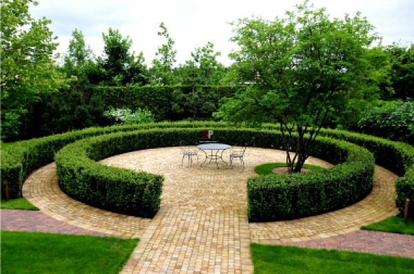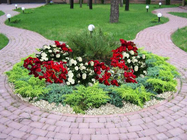 A very original move is to make gardening of a place where garden paths converge, in the form of a circle. Separate sectors are set aside - each for its own decorative culture.