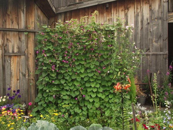A safer alternative is dolichos, growing to 400 cm (but here we must be interested in a particular species in order to avoid mistakes). The plant does not require complex care, but grows well only with an excess of heat, can be easily grown under the hot rays of the sun. Landing is allowed only after the guaranteed end of frost.