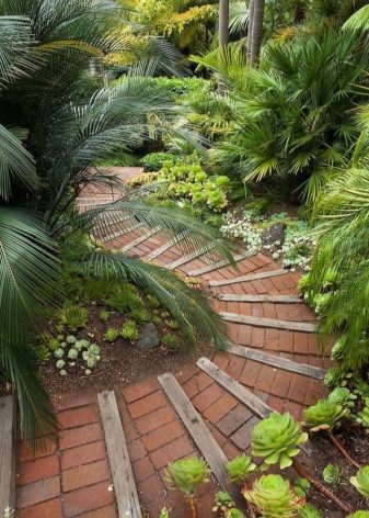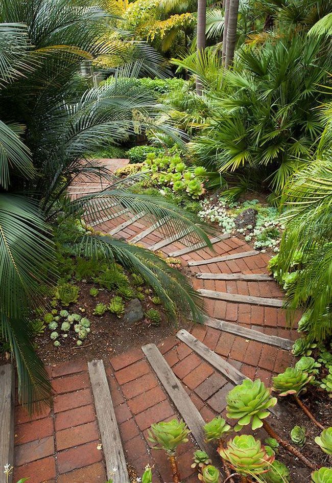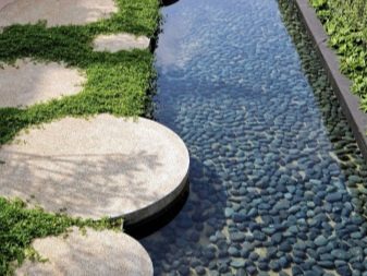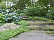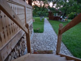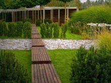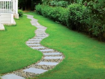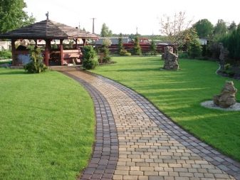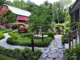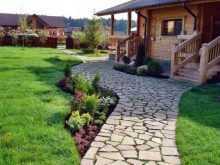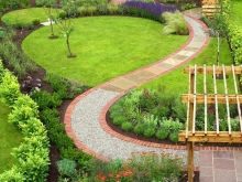 The load on them is not as big as in the first case.Decorative and useful qualities do not require straightness or a particularly flat surface. The tracks can be made from scrap materials, use the inclusion of natural elements. Often they are given a deliberate curvature to lengthen the route or inspect certain landscape compositions. Width can vary too.