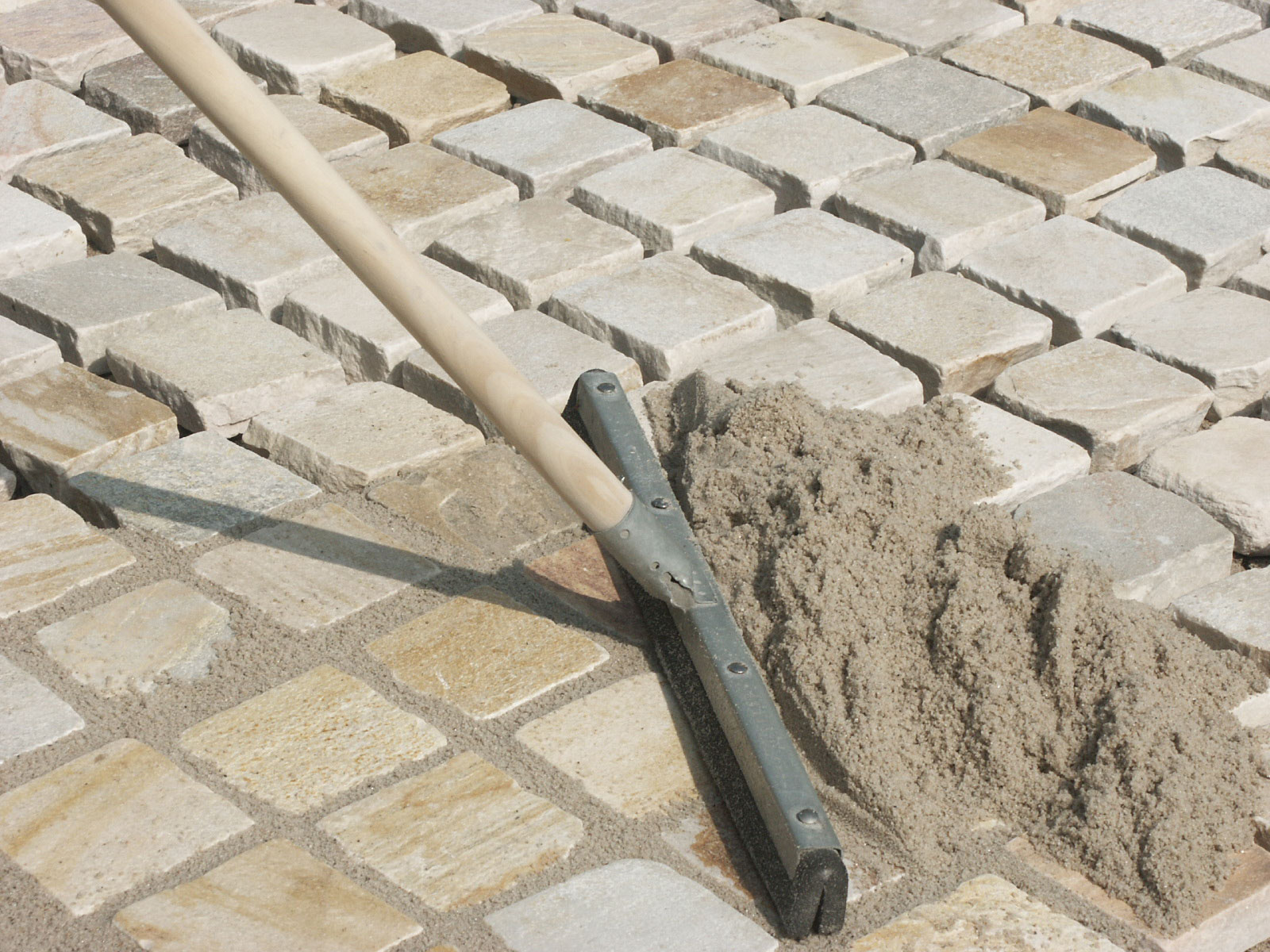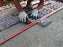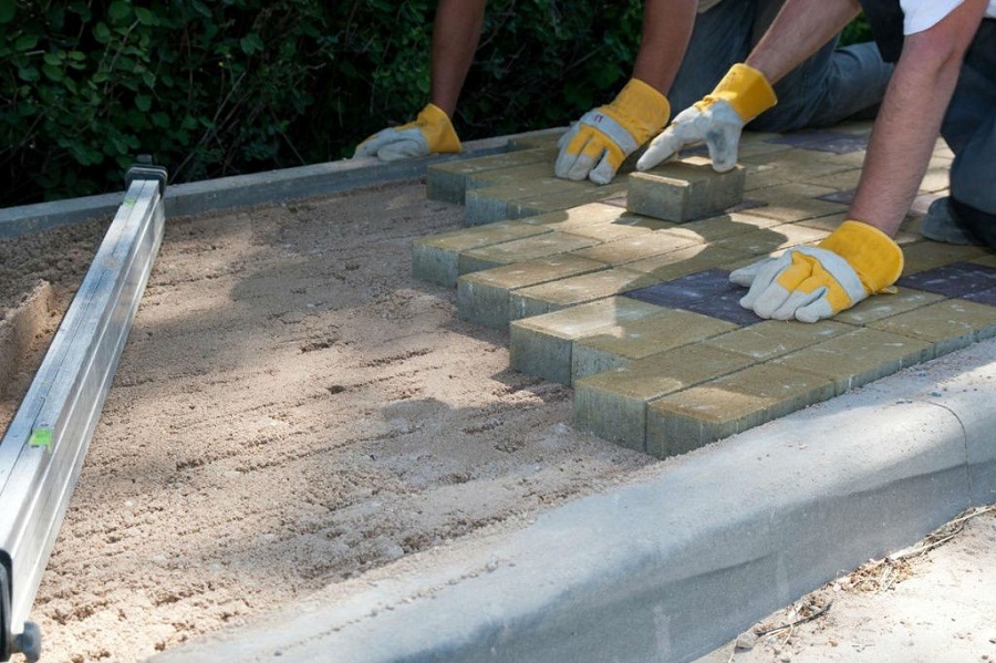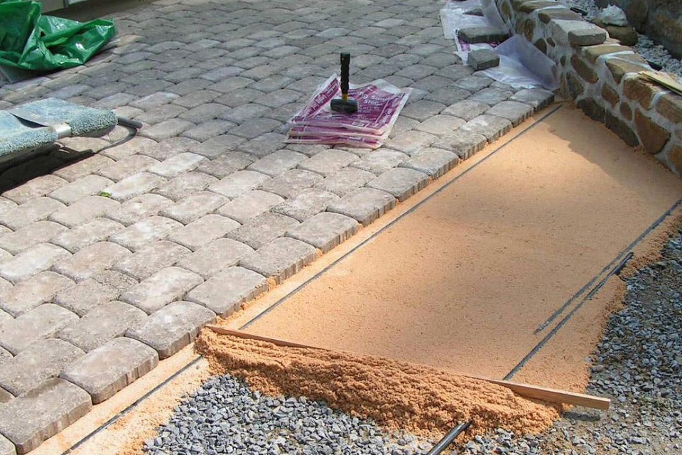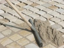 The layout technology for concrete is similar to tile work in the room. In the second case, sand and sand-cement mixture is poured onto the base with a small layer. They are tightly placed on the coating material and rammed, regularly pouring sand or mixture on top, brush over it, spill it with water, and sprinkle sand again until the seams are completely filled.