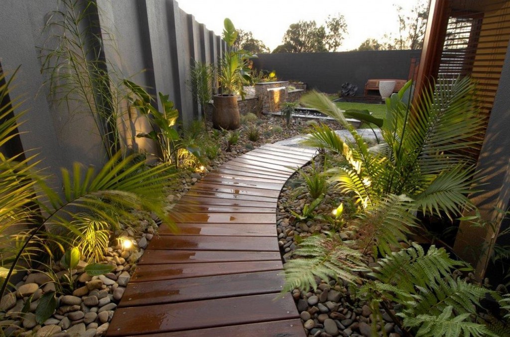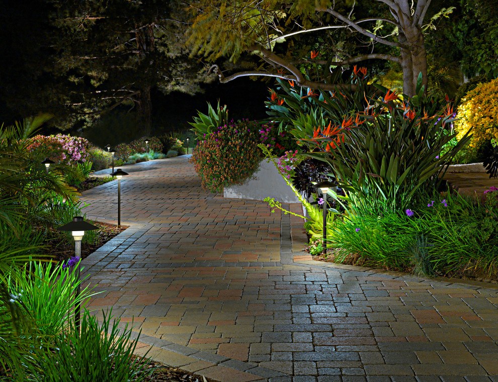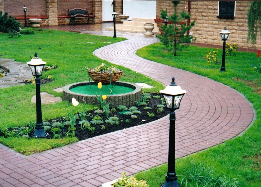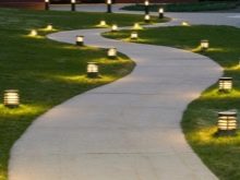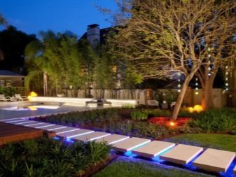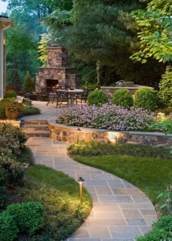 Effectively the illuminated or highlighted track looks. Modern LED backlights are safe. They consume little energy, create a romantic atmosphere of the night garden and allow you to safely travel around the site. Lighting requires laying electrical cable. It is laid at a safe depth in a special corrugated safety hose from damage.