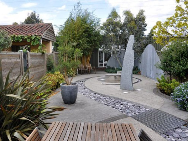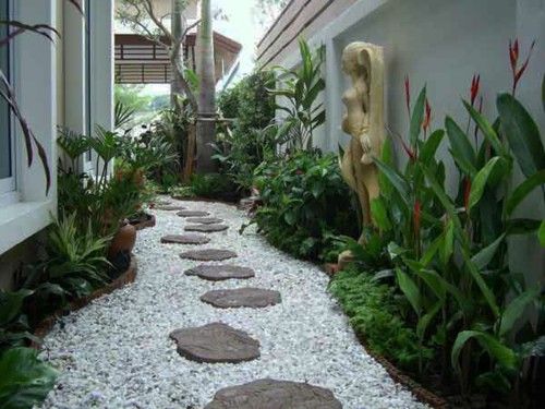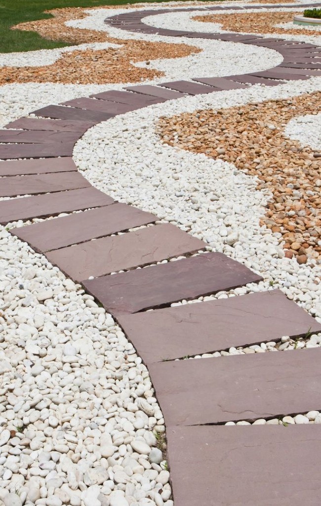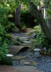 The skillful combination of finishing materials on one track looks beautiful. These materials should match each other in color and structure (for example, stone and gravel, boulders and pebbles). Use materials that are in the area. For example, to create an island of a Japanese garden, it is enough to place pyramids of ordinary stones along a path at some distance.