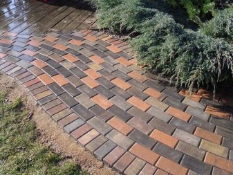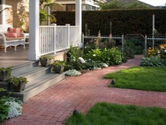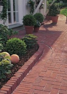 Trench for the path can be laid bricks left over from construction. It is worth remembering that red brick is exposed to moisture. In a few years, it will have to be replaced with a new one. Preparation for laying do, as for a hard coating.