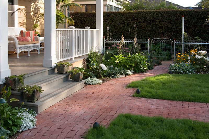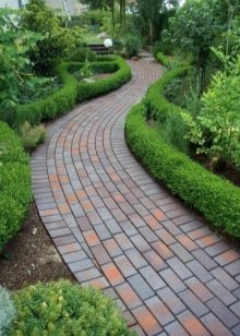 - In the English garden, with its natural beauty, brick paths are indispensable. They harmoniously look among the riot of summer greenery and wild flowers with bright accents of roses, being protected from prying eyes by dense living hedges of evergreen conifers.